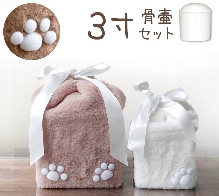 真っ白なペット骨壷でも、かわいい骨袋にお着替えするだけで気持ちも安らぐもの。
