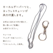 キーホルダーとペンダント用のチェーンを両方合わせてパッケージしていますので、お客様のご希望に合わせてお使いいただけます。