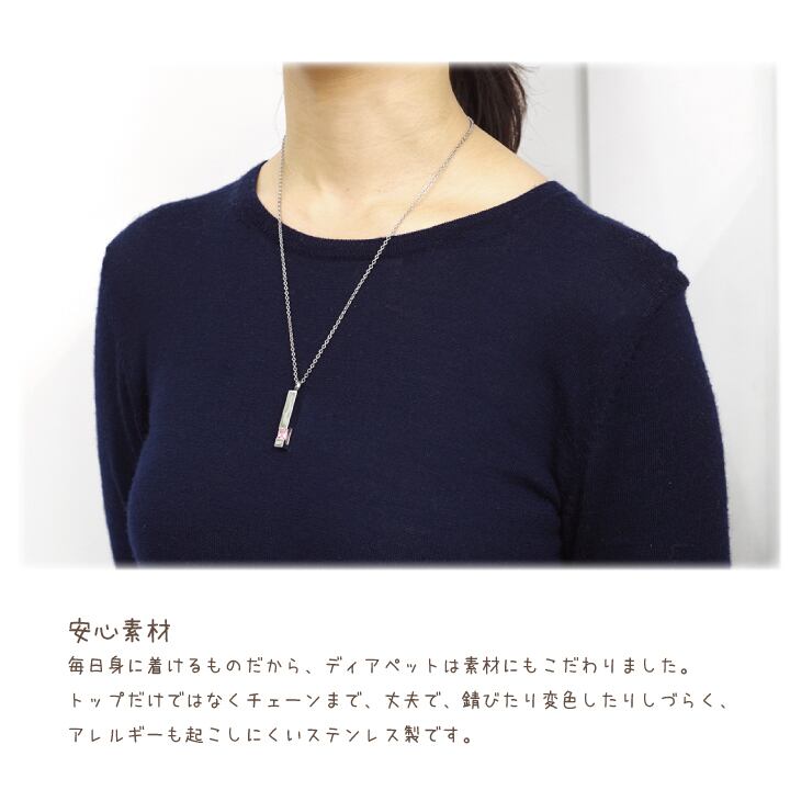 ペンダントはチェーンもステンレス製ですので、アレルギーを起こしにくい素材になっています。