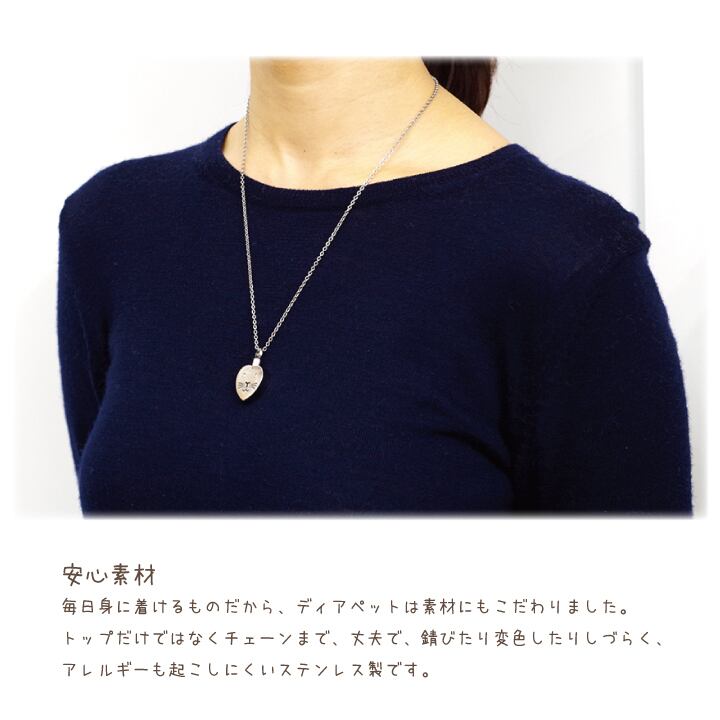 ペンダントはチェーンもステンレス製ですので、アレルギーを起こしにくい素材になっています。