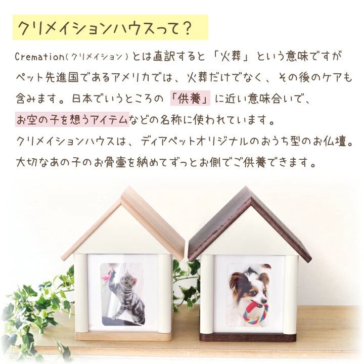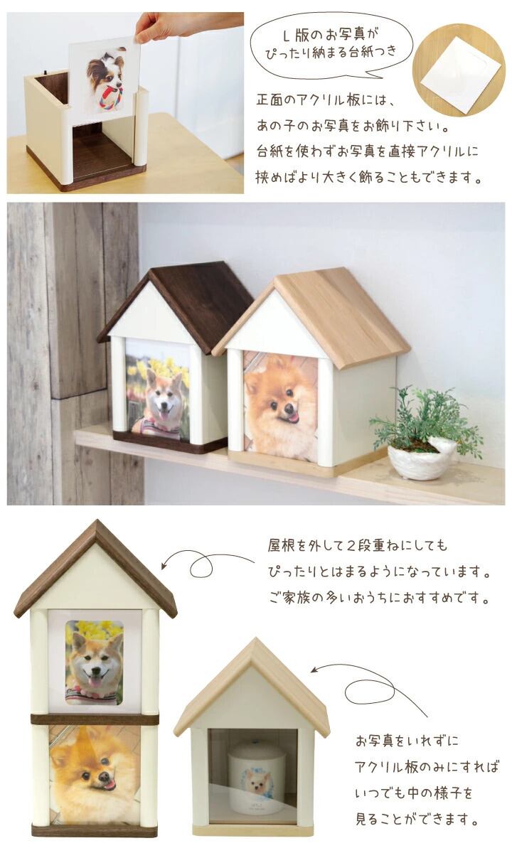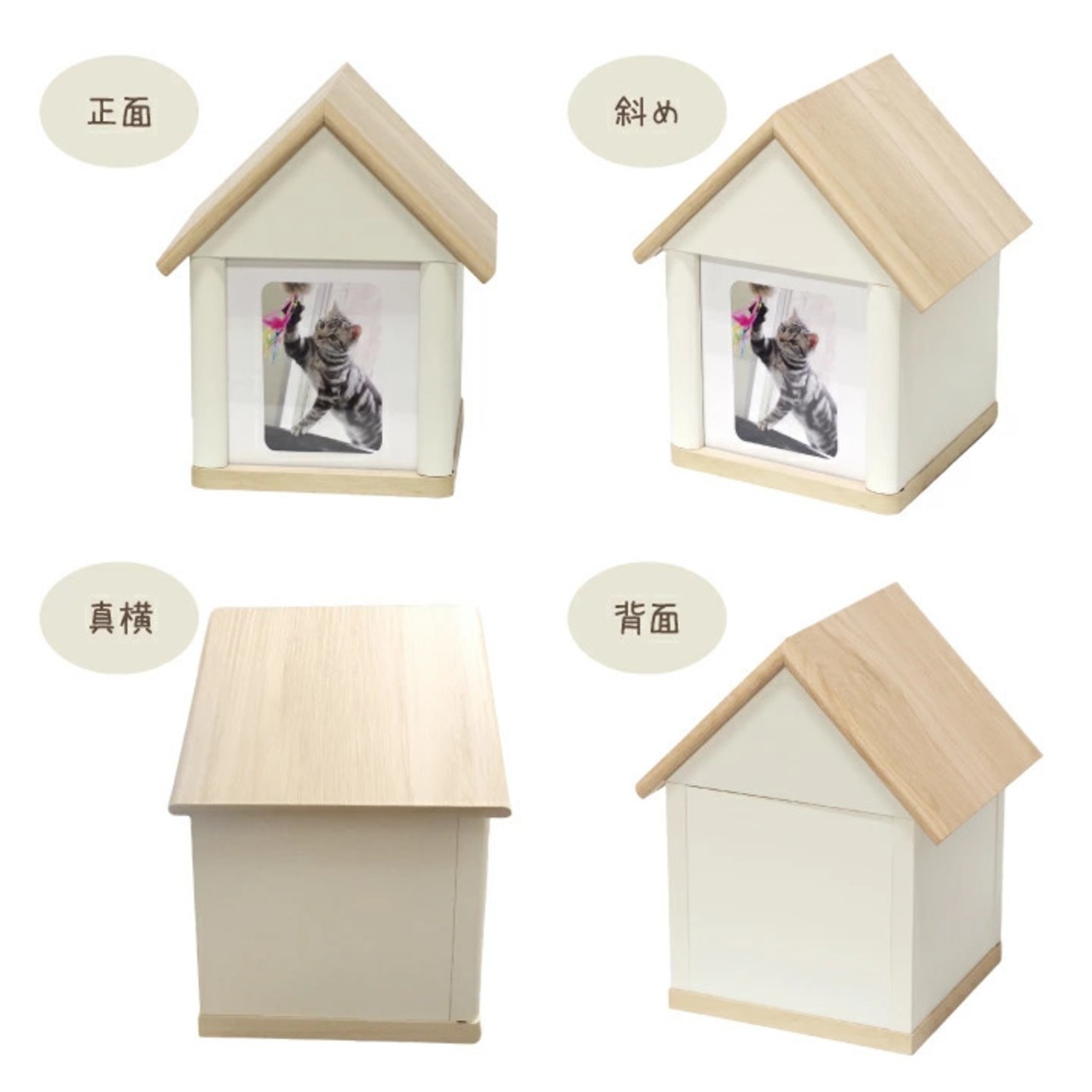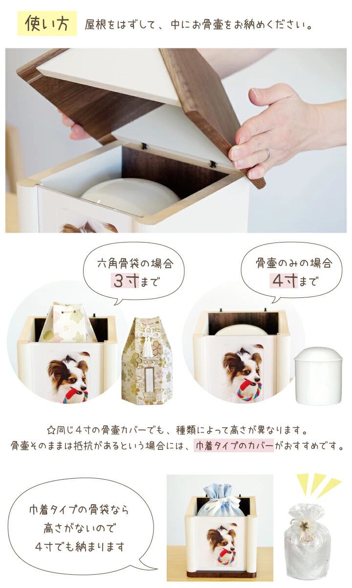 おうち型のデザインは、お骨壷が納まっているとはわからないので、これからもペットちゃんと共に過ごしたい方には本当におすすめのペット仏壇です(4寸サイズまでの骨壷を中に納めることができます。骨袋におさめたままの場合は3寸までです)。