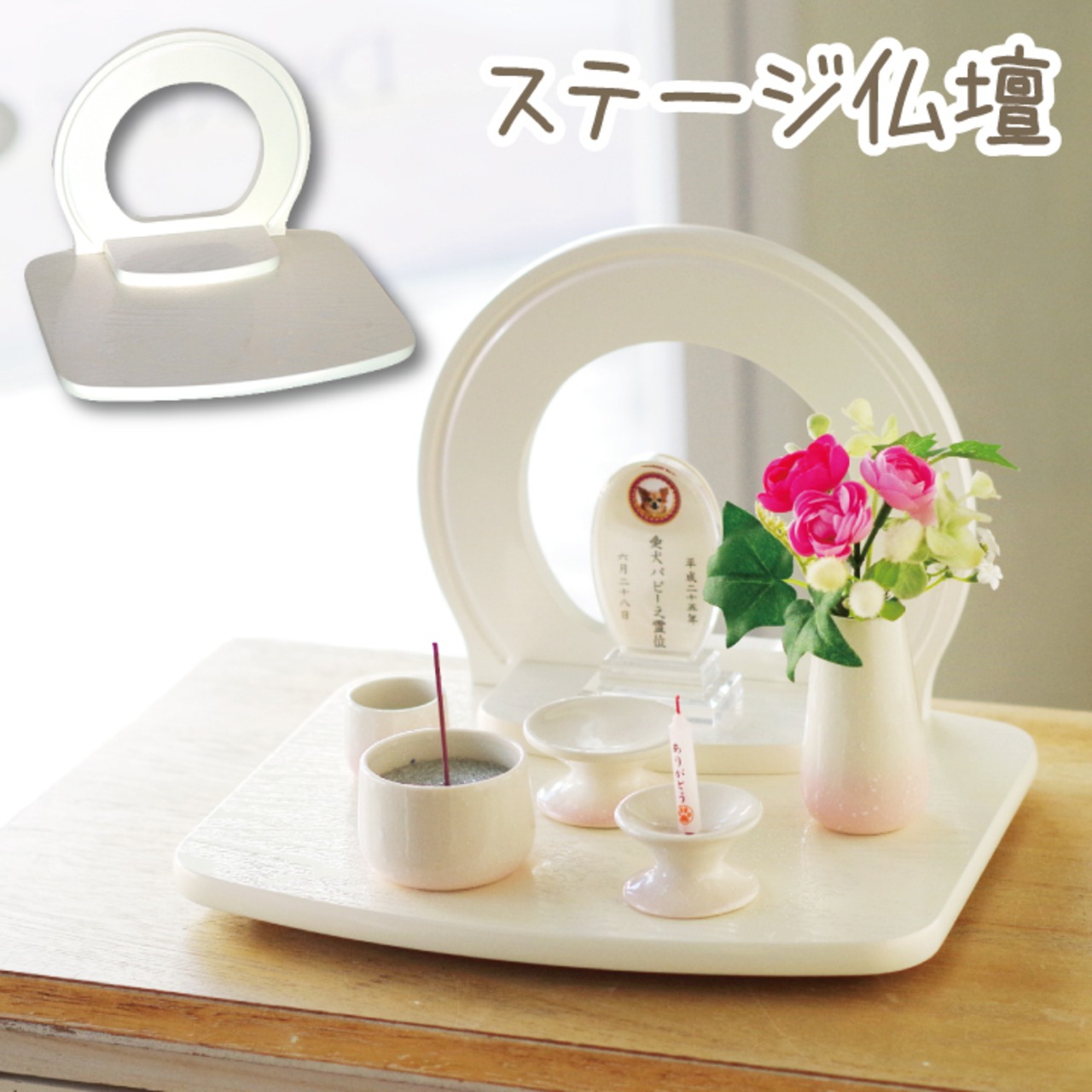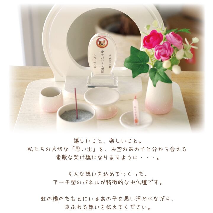 かわいいペットちゃんにぴったりの、ステージタイプのかわいいペット仏壇です。